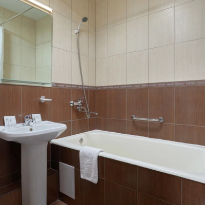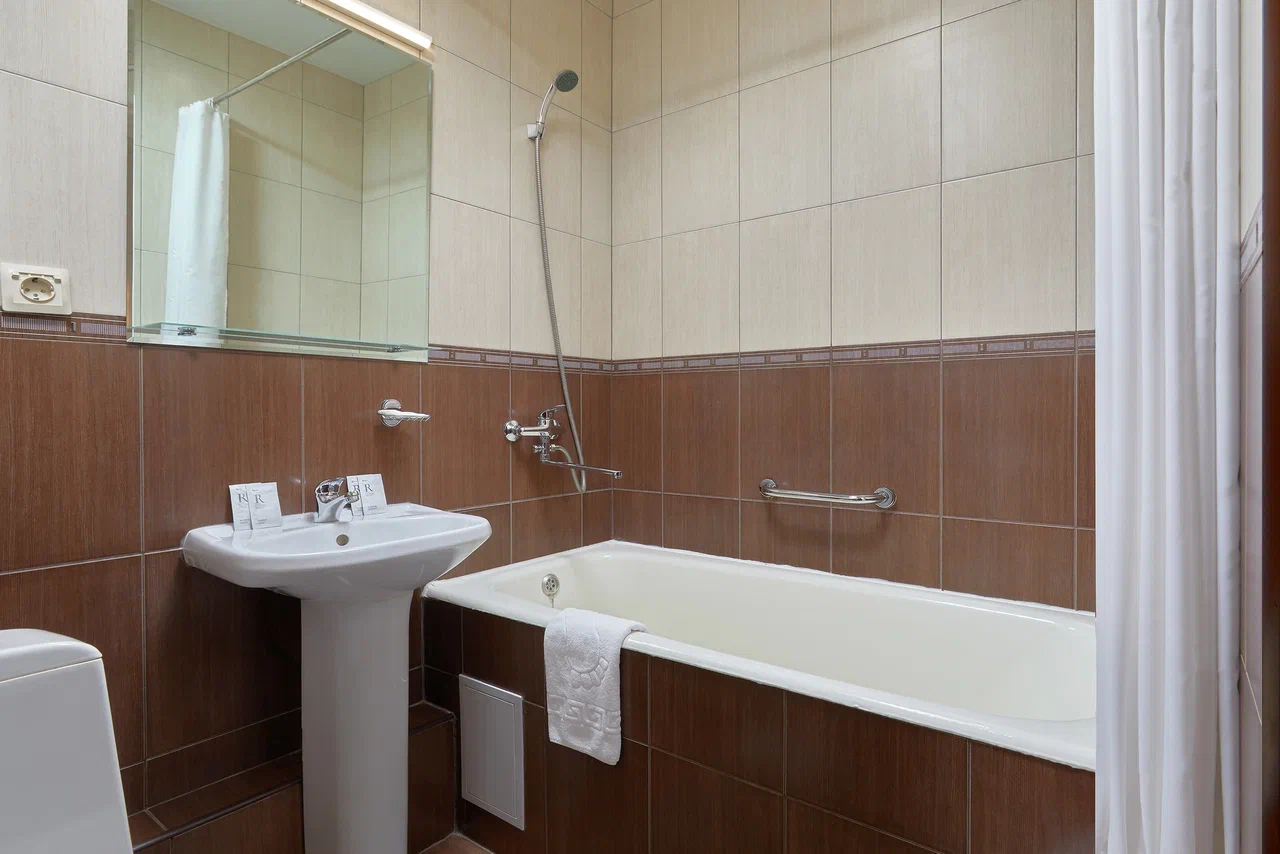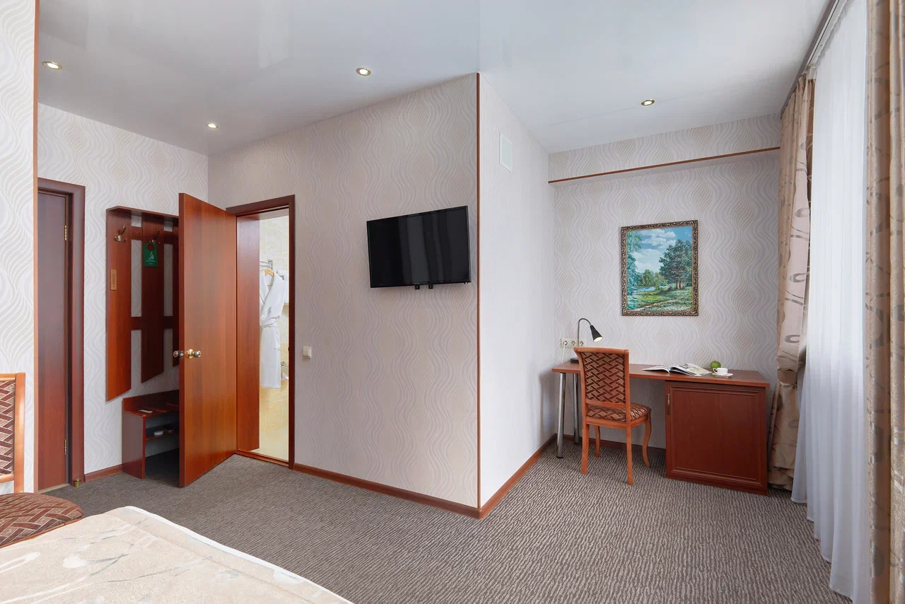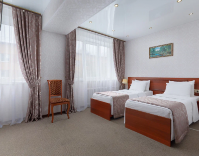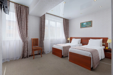 В номере 2 удобных кровати, постельное белье из 100% хлопка, ЖК-телевизор, мини-холодильник, письменный стол, кондиционер, телефон, шторы «блэкаут», современный текстиль, багажница. В ванной комнате – фен, косметические принадлежности (Мыло в инд. упаковке, гель для душа, шампунь). Бесплатный Wi-Fi. Телефон в каждом номере: внутренняя и городская связь.