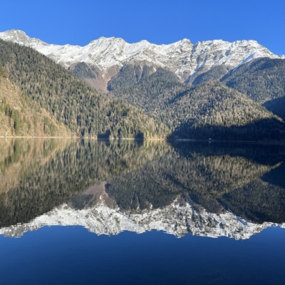 Это самое крупное озеро в Абхазии, его площадь 1,27 кв. км., длина 2,5 км., а ширина 870 метров. К тому же, это одно из самых глубоководных озёр Кавказа - его глубина достигает 116 меров, во впадинах 63 метра. Особенностью водоёма является его способность менять цвет - от изумрудного до сине-голубого. Озеро Рица является образцом прекрасных, природных пейзажей, уникальным происхождением и чистой водой. Во время пути к озеру Вы совершите несколько остановок: у водопадов Девичьи и Мужские слезы, а также у потрясающего Голубого озера.