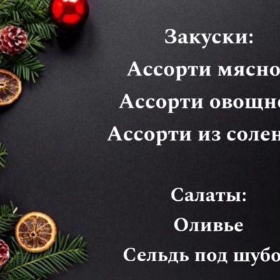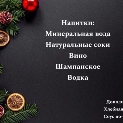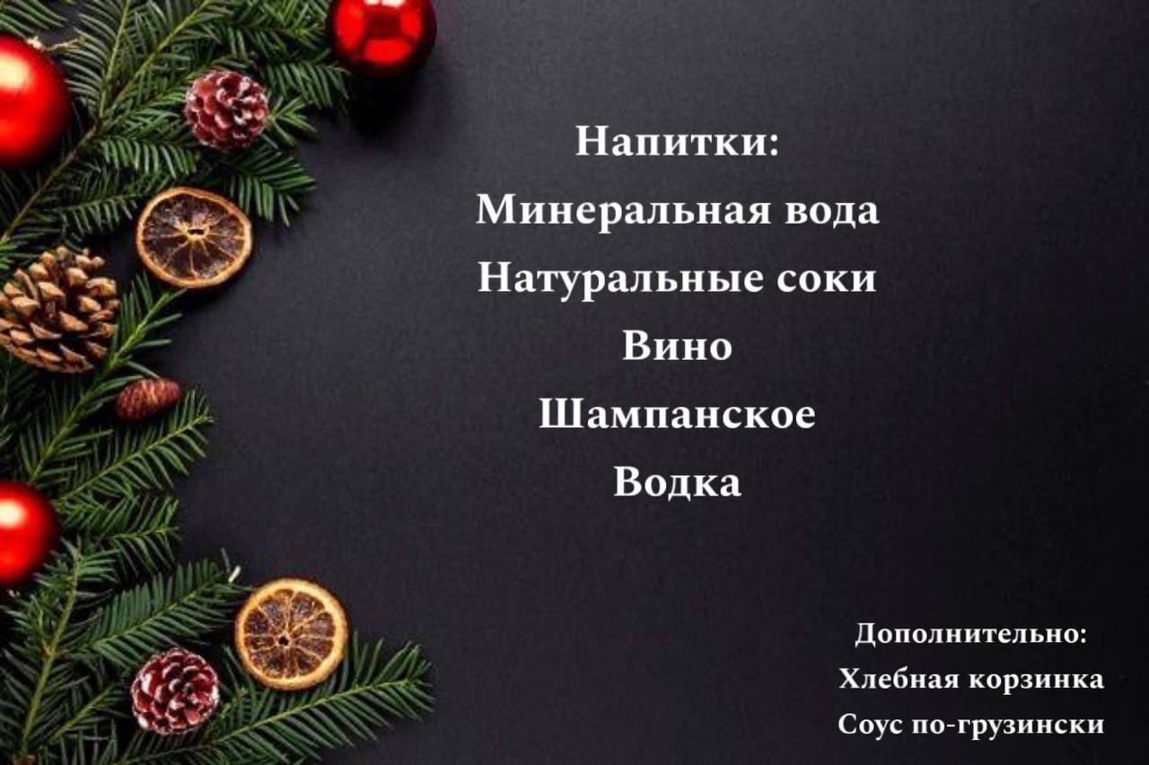 19:00 Ужин. Празднование Нового года в гостинице. Новогодний банкет включен.